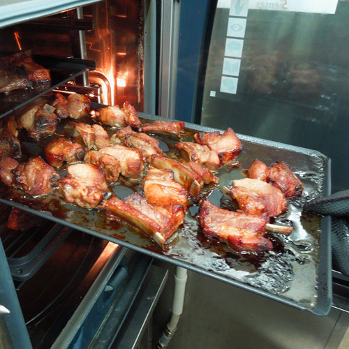 こちらは豚のスペアリブのローストです。自家製のタレにしっかりと漬け込み、じっくりと焼き上げます。